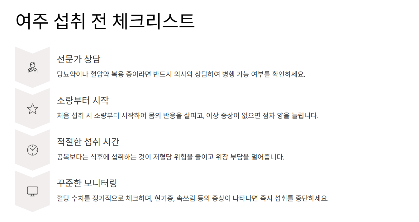 - 약 복용 중이라면 의사와 병행 여부 상담 필요