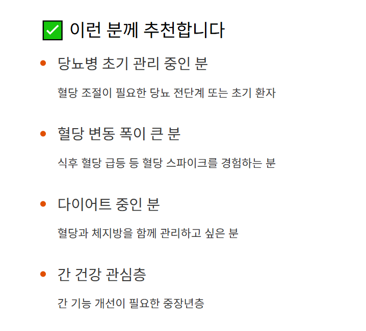 - 혈당 변동 폭이 큰 분 (식후 혈당 급등 등)