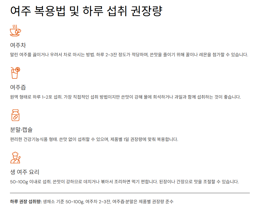 - 여주차: 하루 2~3잔