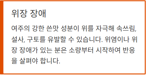 - 쓴맛 성분이 위를 자극해 속쓰림, 설사, 구토 유발할 수 있음