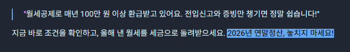 📌 연말정산 월세공제는 단순 절세가 아니라 가계 부담을 줄이는 중요한 혜택입니다.