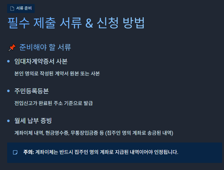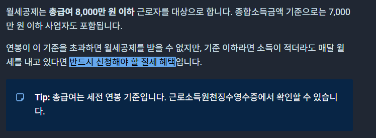 🧾 참고로 월세공제는 세금에서 직접 차감되는 세액공제입니다. 이는 소득공제보다 환급 효과가 커 절세에 유리합니다.