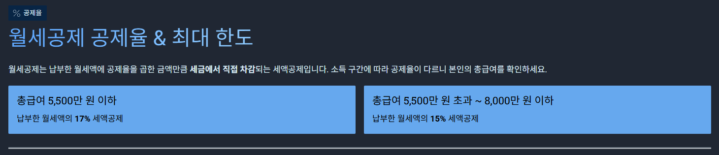 - 월세공제 공제율 & 공제액 계산