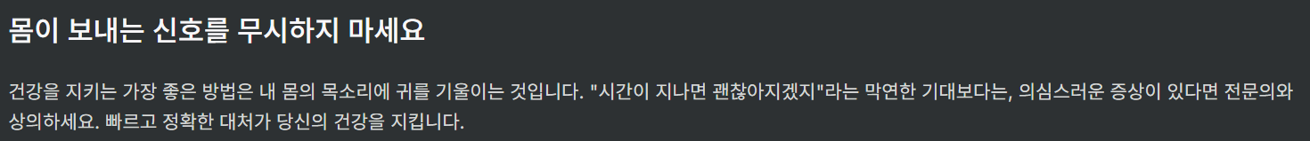 건강은 내 몸이 보내는 신호를 얼마나 빨리 받아들이느냐에 따라 달라집니다.