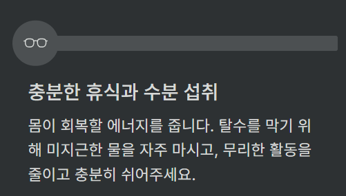 - 충분한 휴식 및 수분 섭취