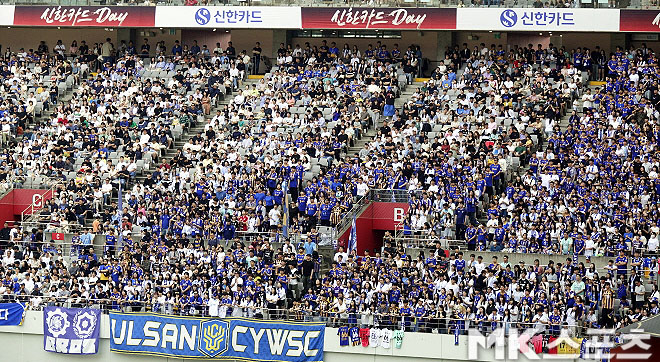 경기 중 관중들이 응원하는 모습은 울산의 열기를 잘 보여줍니다.
