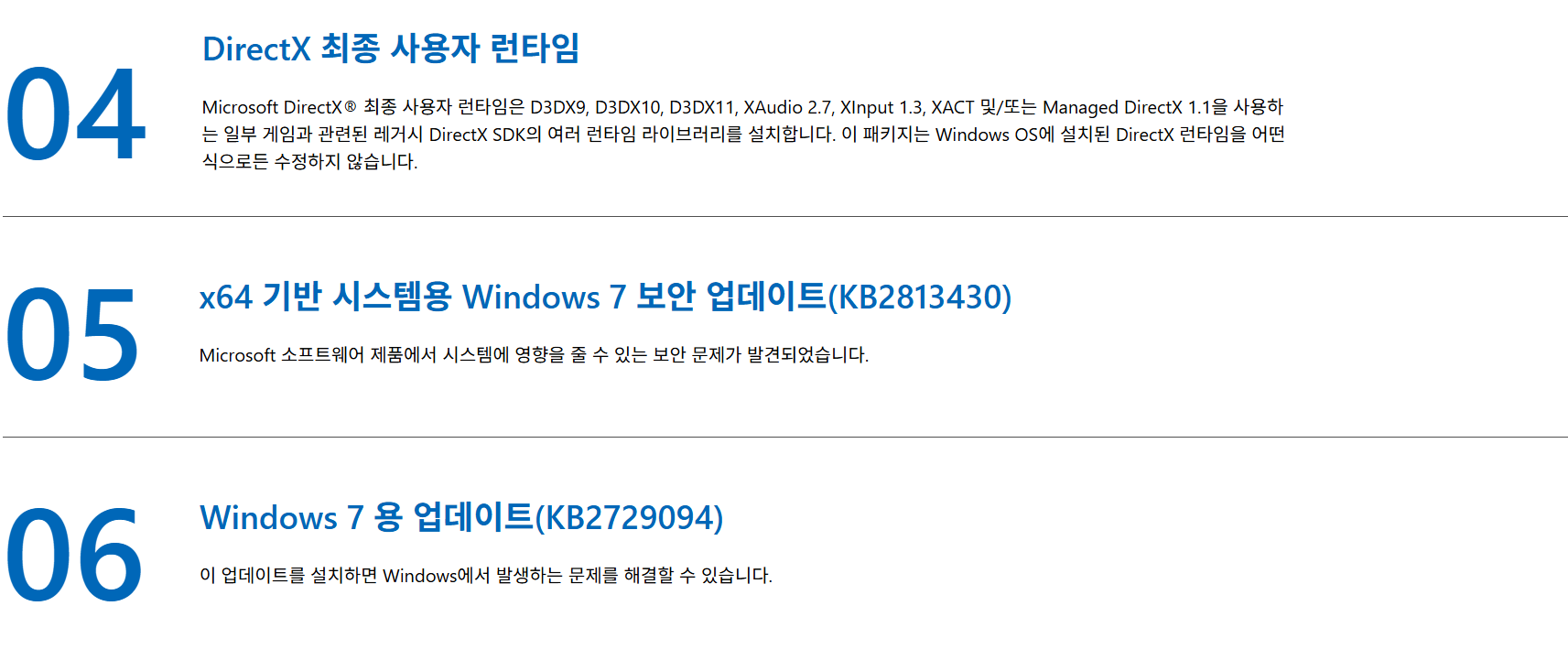- 설치 완료 후 Windows Update로 최신 업데이트 모두 적용하세요.