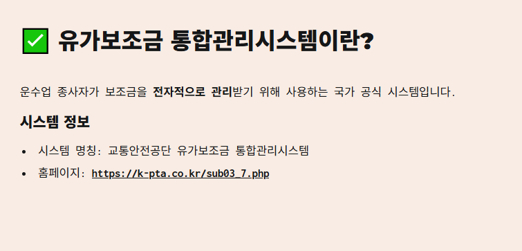 - 시스템 명칭: 교통안전공단 유가보조금 통합관리시스템