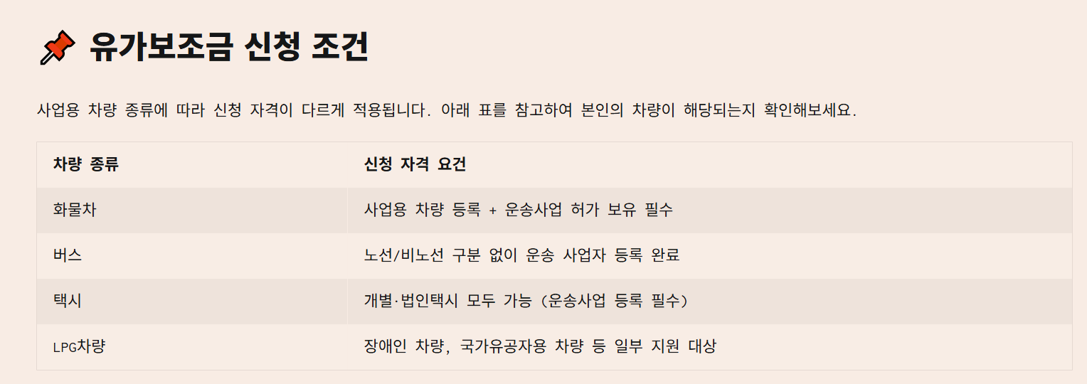 📌 유가보조금 신청 조건
