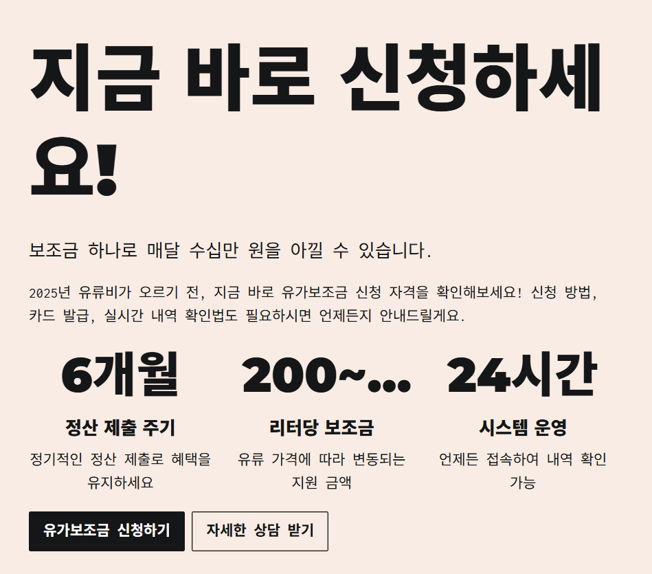 2025년 유류비가 오르기 전, 지금 바로 유가보조금 신청 자격을 확인해보세요!