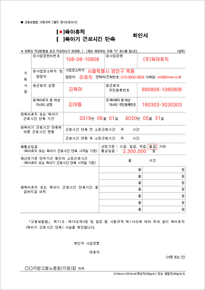 - 육아휴직 확인서 : 사업주가 작성해야 하는 서류로, 근로자의 육아휴직을 확인하는 문서입니다.