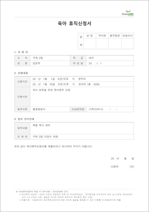 - 신청서 작성 : 위에서 언급한 육아휴직 신청서를 작성합니다.