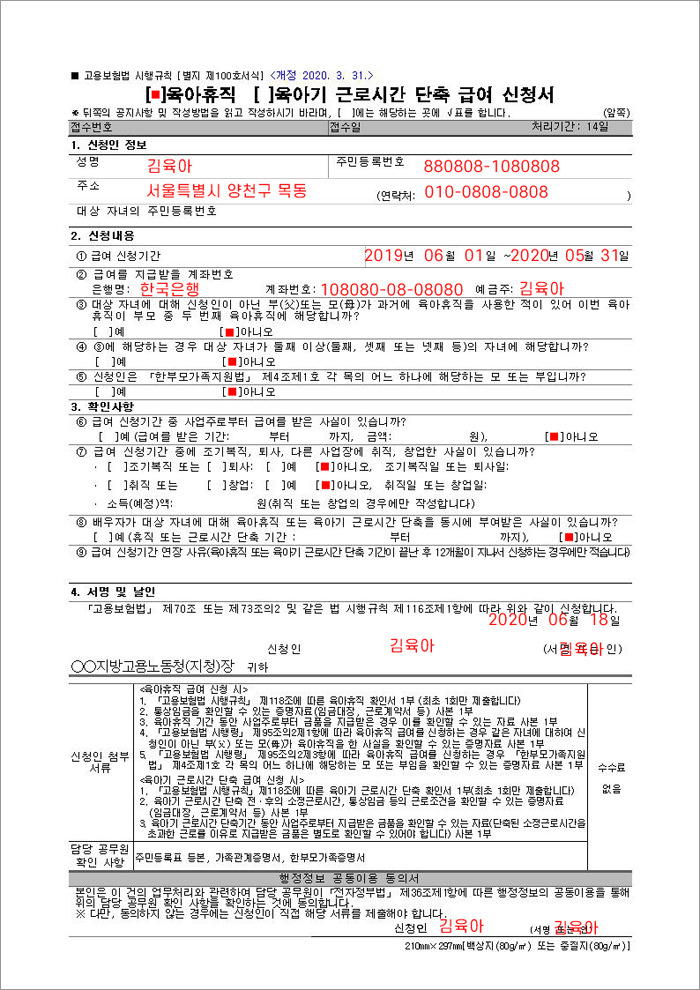 - 육아휴직 신청서 : 본인이 직접 작성해야 하는 서류로, 신청 기간과 자녀의 정보가 포함됩니다.