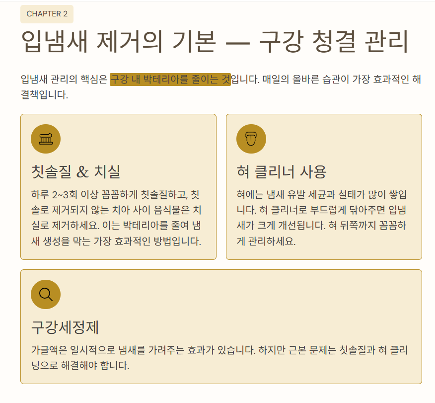 🦷 2. 입냄새 제거의 기본 — 구강 청결 관리