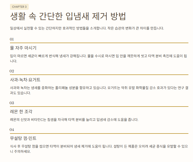 💧 3. 생활 속 간단한 입냄새 제거 방법