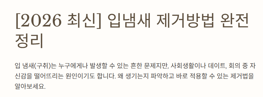 [2026 최신] 입냄새 제거방법 완전 정리 — 원인부터 홈케어까지