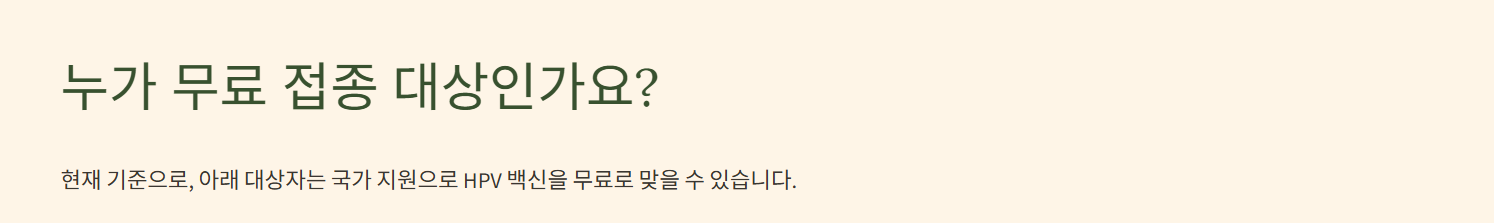 현재 기준으로, 아래 대상자는 국가 지원으로 HPV 백신을 무료로 맞을 수 있습니다.