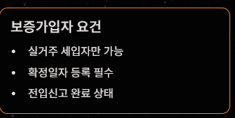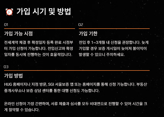 | 가입시기 | 계약 후 전입신고 및 확정일자 등록 직후 |