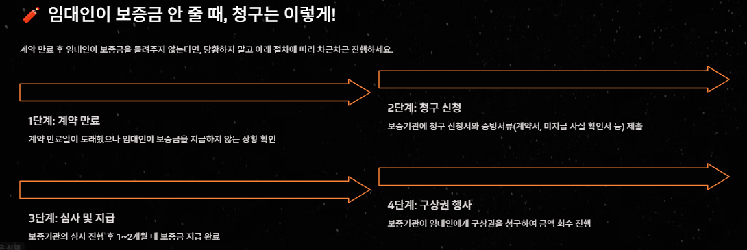 | 청구 방법 | 계약만료 후 임대인 미지급 시 보증기관에 직접 신청 |