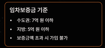 | 가입조건 | 수도권 7억, 지방 5억 이하 보증금, 확정일자 필수 |