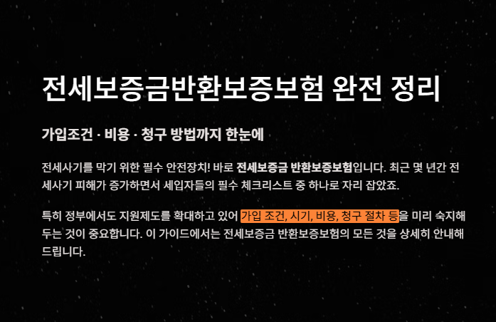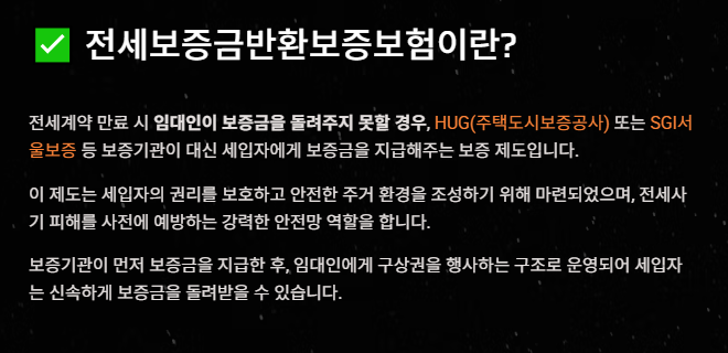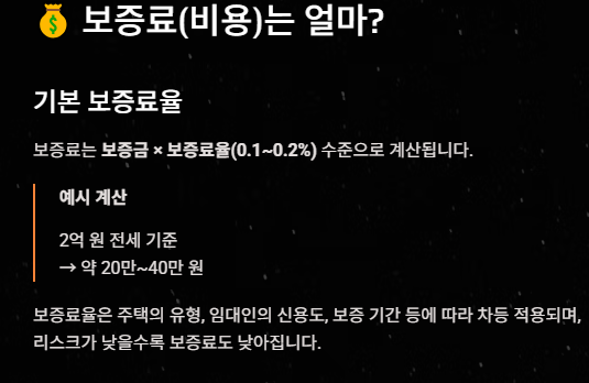 | 비용 | 보증금의 0.1~0.2% 수준 (정부 지원 시 더 낮음) |