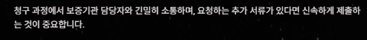 - 보증기관에 청구 신청서 + 증빙서류 제출