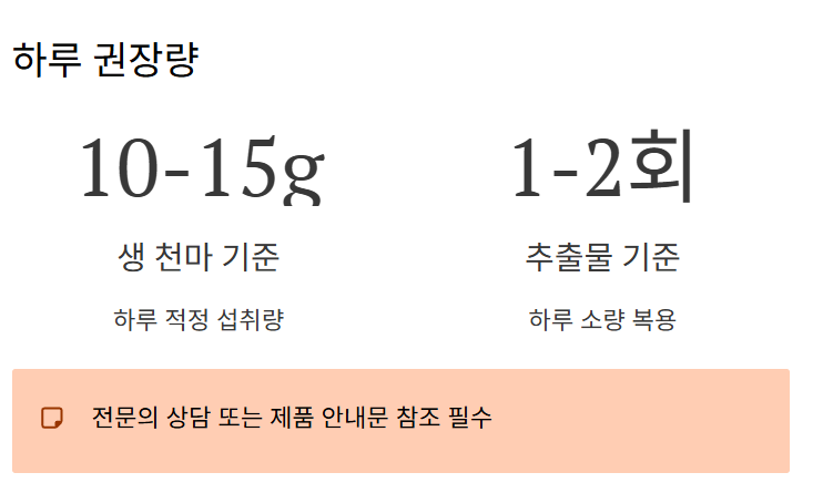 - 생 천마 기준: 10~15g/day