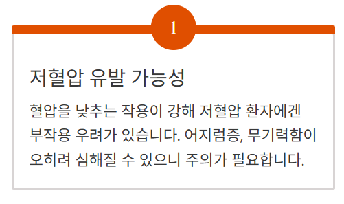 - 혈압을 낮추는 작용이 강해 저혈압 환자에겐 부작용 우려