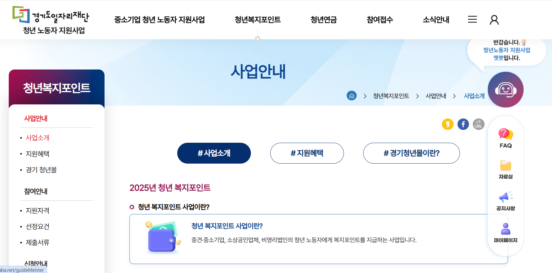 경기도일자리재단 - 신청/발표 - 2025년 경기도 청년 복지포인트 2차 모집