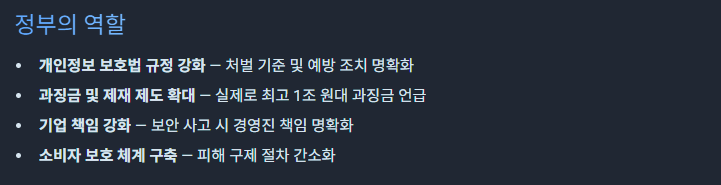 - 정부는 이번 사건을 기점으로 개인정보 보호 법 규정 강화, 과징금 및 제재 제도 확대, 기업 책임 강화를 추진해야 한다는 목소리가 커지고 있습니다. 실제로 최고 1조 원대 과징금을 언급한 보도도 나왔습니다.