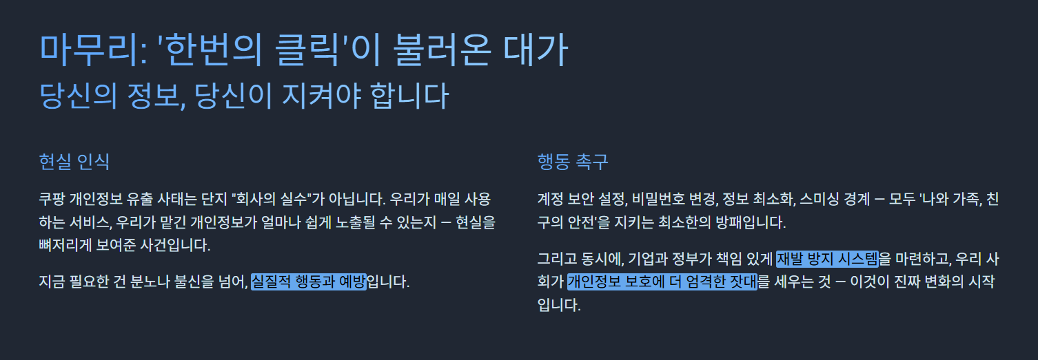 우리가 매일 사용하는 서비스, 우리가 맡긴 개인정보가 얼마나 쉽게 노출될 수 있는지 — 현실을 뼈저리게 보여준 사건입니다.