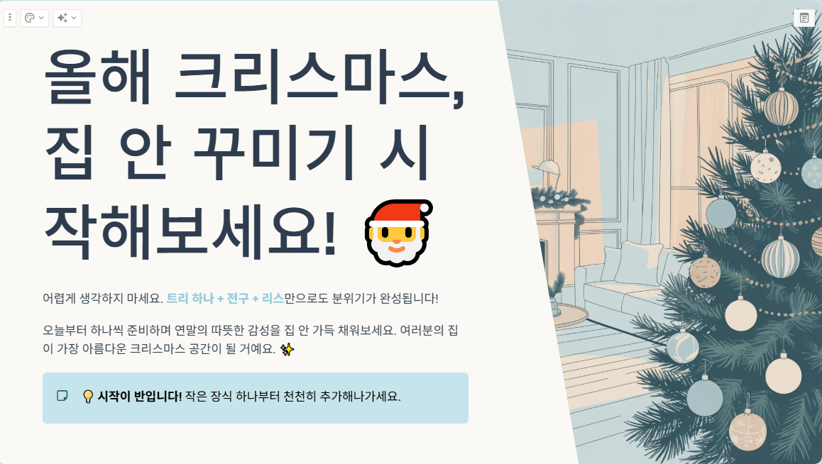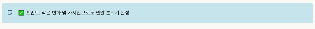 ✅ 포인트: 작은 변화 몇 가지만으로도 연말 분위기 완성!