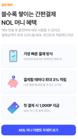 - NOL 머니 간편결제 등록 → 빠른 결제 + 포인트 적립