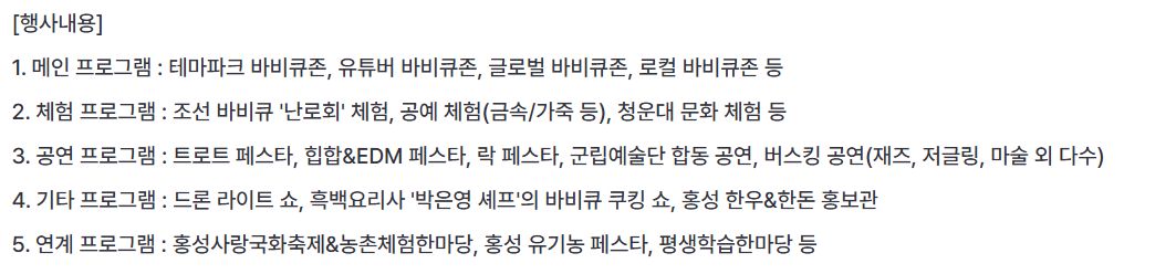 | 축제명 | 2025 홍성 글로벌 바비큐 페스티벌 |