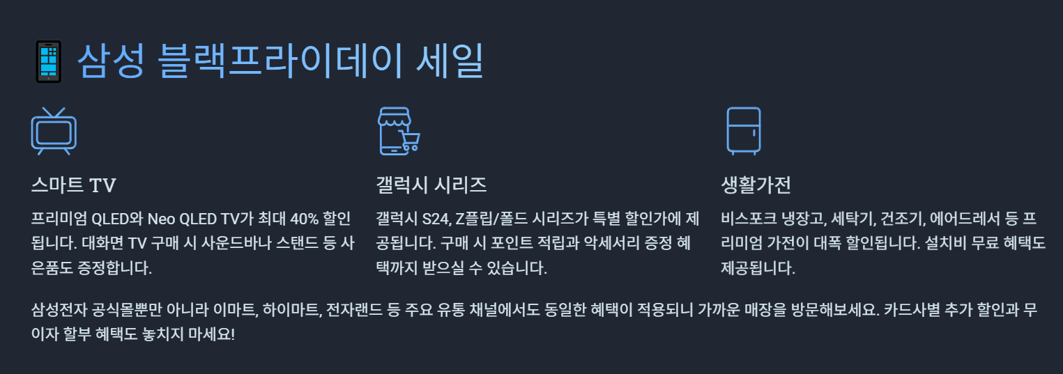 - 삼성 75인치 UHD TV – 40% 할인 + 사운드바 증정