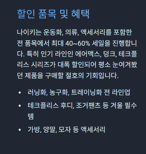 - 나이키 공홈 또는 아울렛 동시 할인 진행