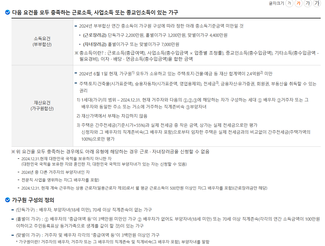 2025년 근로장려금 신청 자격
