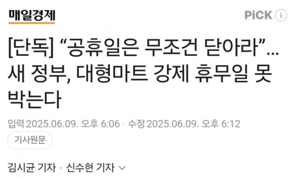 2025년 6월, 오세희 의원이 ‘월 2회 의무휴업일을 반드시 공휴일로 지정’하도록 유통산업발전법 개정을 추진하는 법안을 발의했습니다.