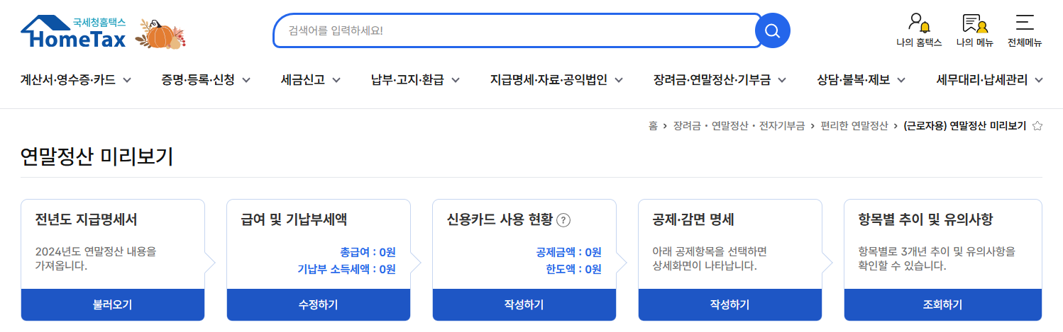 연말정산 미리보기를 하려면 아래 순서대로 진행하시면 됩니다.