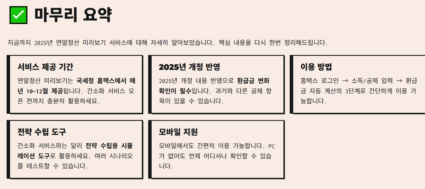 - ✔ 2025년 개정 내용 반영으로 환급금 변화 확인 필수
