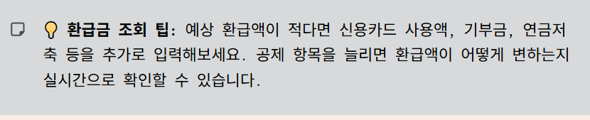 - ✔ 홈택스 로그인 → 소득/공제 입력 → 환급금 자동 계산