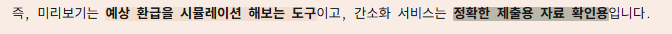 - ✔ 간소화 서비스와는 달리 전략 수립용 시뮬레이션 도구로 활용