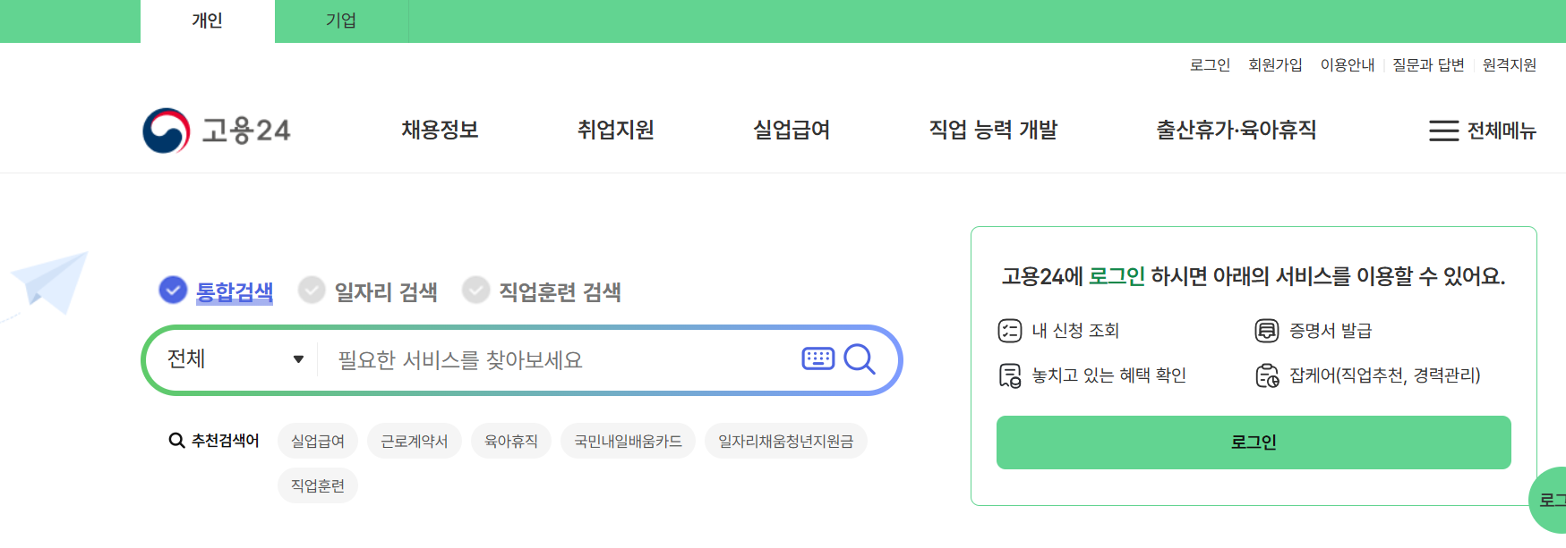 - 고용보험 가입자 (직장인 기준)