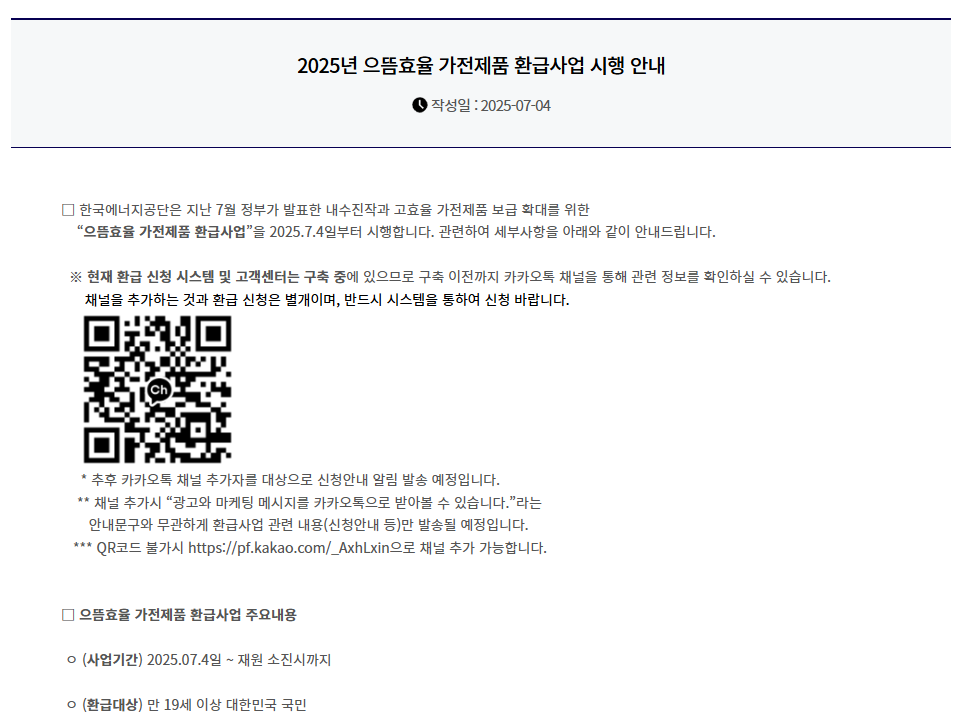 - 에너지공단 환급 홈페이지 접속 (2025년 8월 중 개통 예정)