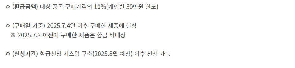 - 환급 대상 제품 2025년 7월 4일 이후 구매, 구매일로부터 60일 이내 신청