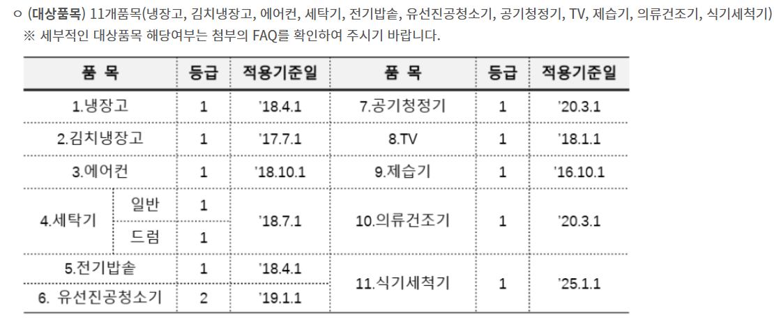 | 식기세척기 | 1등급 | 2025년 신규 추가 |