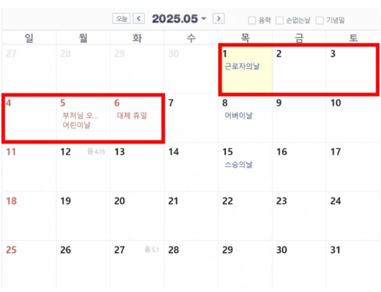 → 만약 5월 2일이 임시공휴일로 지정된다면 최대 5일 연휴!