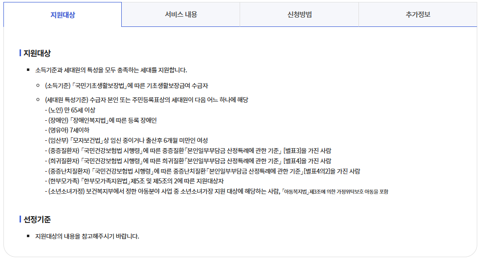 - 신청 시 주민등록등본, 기초수급자증명서 등 제출 필요할 수 있음.