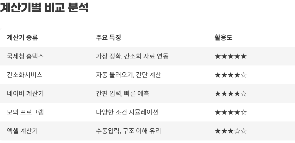 ✅ 자동계산기 비교 요약표