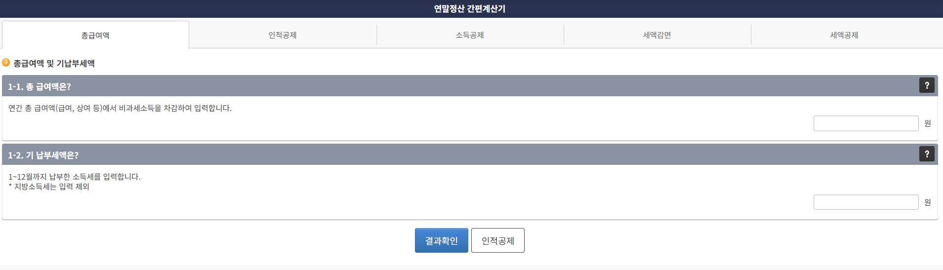 - 자녀세액공제, 경로우대공제 등 상세 항목 직접 조절 가능